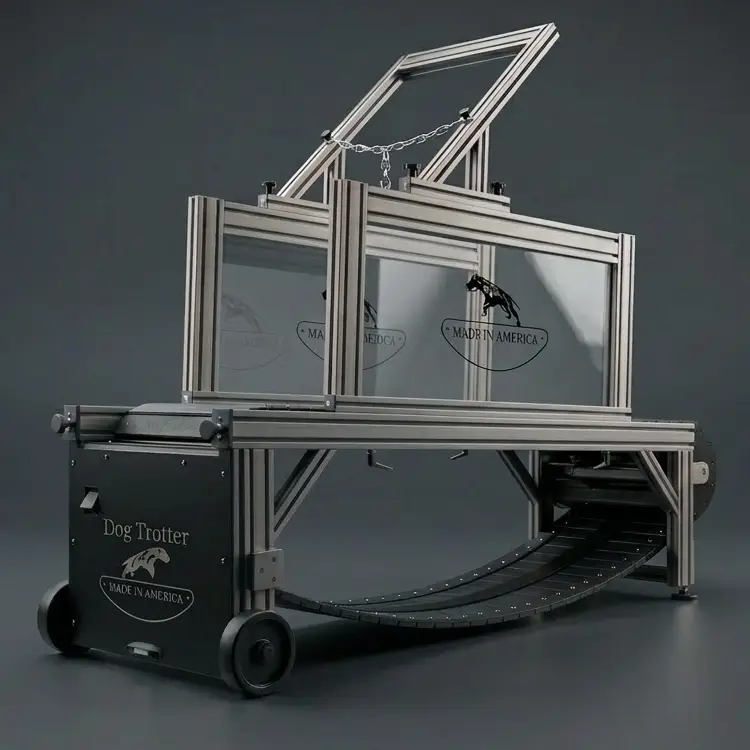 The EVO Pro Dog Trotter is our most advanced canine treadmill, designed for serious conditioning, performance training, and professional use. This high-performance slat mill allows dogs to run at their own pace while giving handlers precise control over workout intensity.